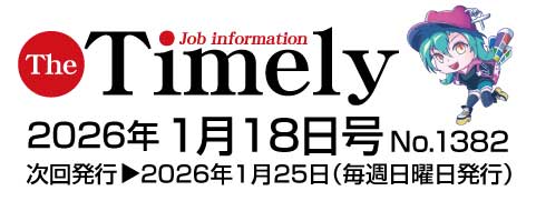 発行のお知らせ 2026.01.18 求人情報紙ザ・タイムリー 1/18号 発行しました 週刊求人情報紙 ザ・タイムリー 2026年 1/18号発行しました。 是非ご覧ください。 [Web版] 週刊求人情報 ザ・タイムリーはこちらから Prev Next
