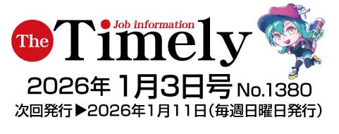 発行のお知らせ 2026.01.03 求人情報紙ザ・タイムリー 1/3号 発行しました 週刊求人情報紙 ザ・タイムリー 2025年 1/3号発行しました。 是非ご覧ください。 [Web版] 週刊求人情報 ザ・タイムリーはこちらから Prev