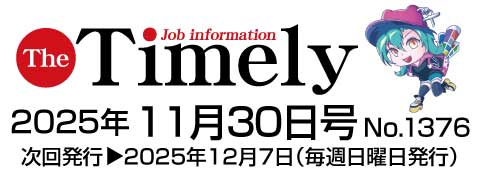 発行のお知らせ 2025.11.30 求人情報紙ザ・タイムリー 11/30号 発行しました 週刊求人情報紙 ザ・タイムリー 2025年 11/30号発行しました。 是非ご覧ください。 [Web版] 週刊求人情報 ザ・タイムリーはこちらから Prev