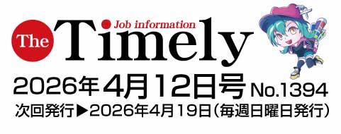 発行のお知らせ 2026.04.12 求人情報紙ザ・タイムリー 4/12号 発行しました 週刊求人情報紙 ザ・タイムリー 2026年 4/12発行しました。 是非ご覧ください。 [Web版] 週刊求人情報 ザ・タイムリーはこちらから Prev